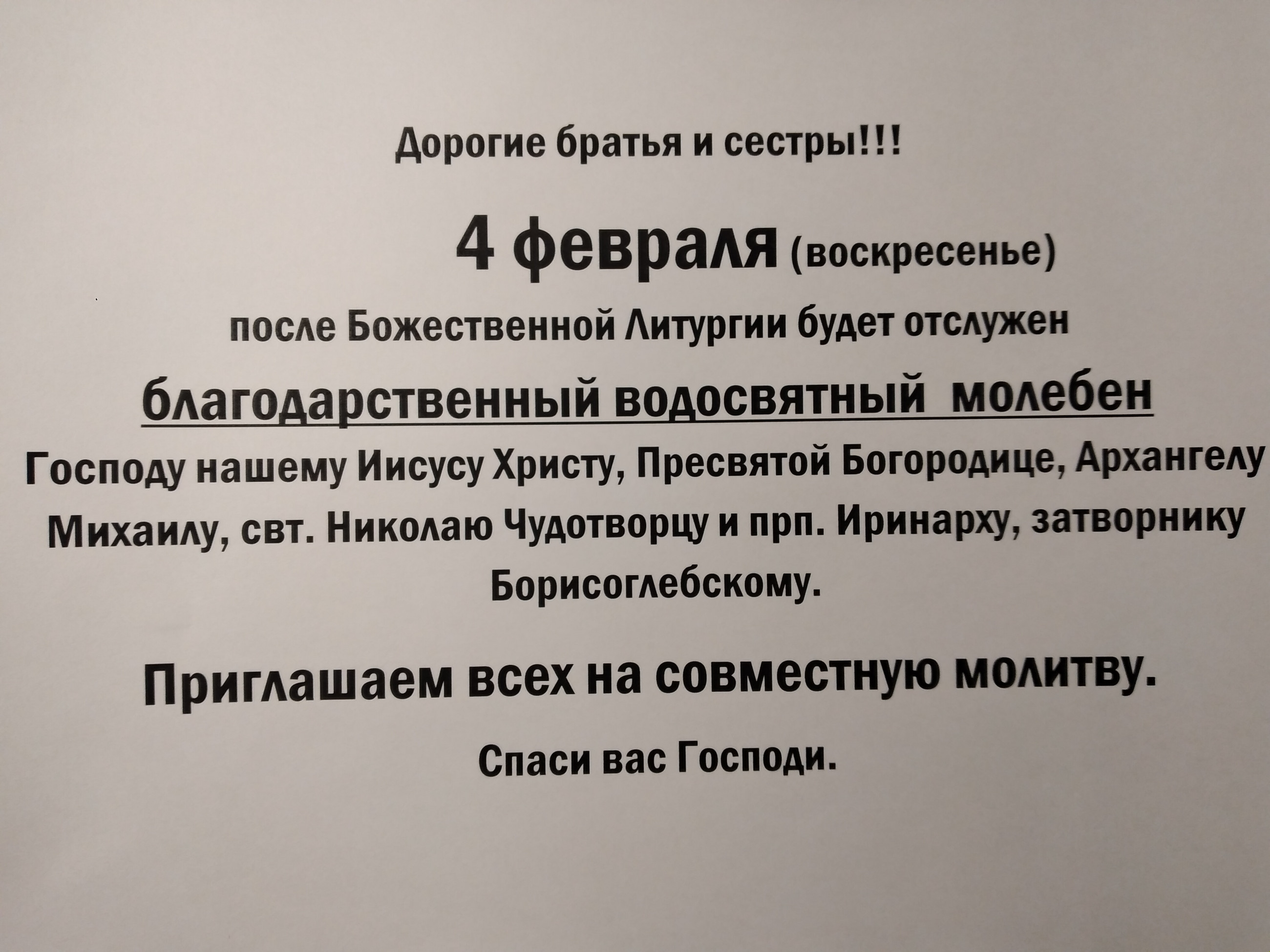 Благодарственный молебен.