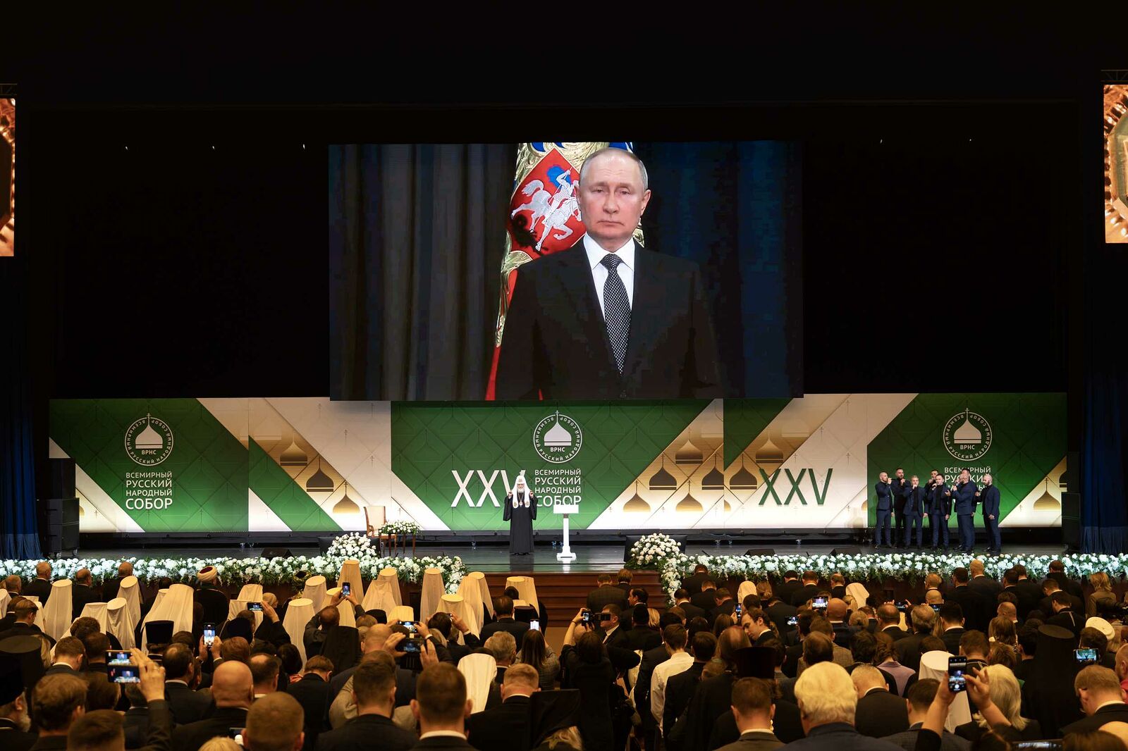 В заседании в Государственном Кремлевском дворце принял участие глава Всемирного русского народного собора Святейший Патриарх Московский и всея Руси Кирилл.